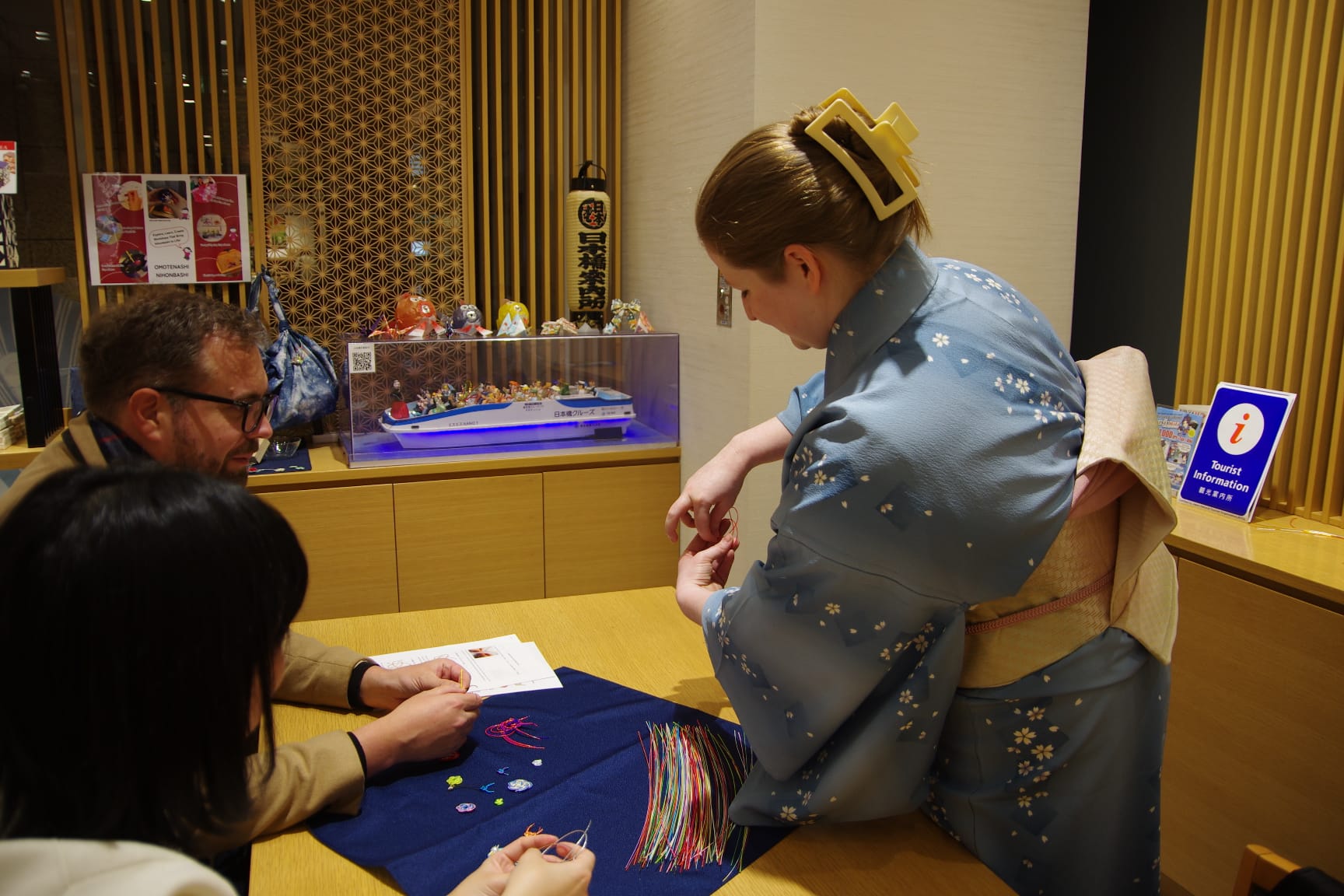 Then, take a short subway ride to Nihonbashi. In this historic district, you will take part in a hands-on cultural experience, crafting your own "Mizuhiki" brooch. In Japan, the act of tying a knot has long been a prayer in itself, a way to bind a person’s wishes to their soul. By weaving these traditional decorative cords, you will transform your prayers for love into a beautiful, tangible keepsake.